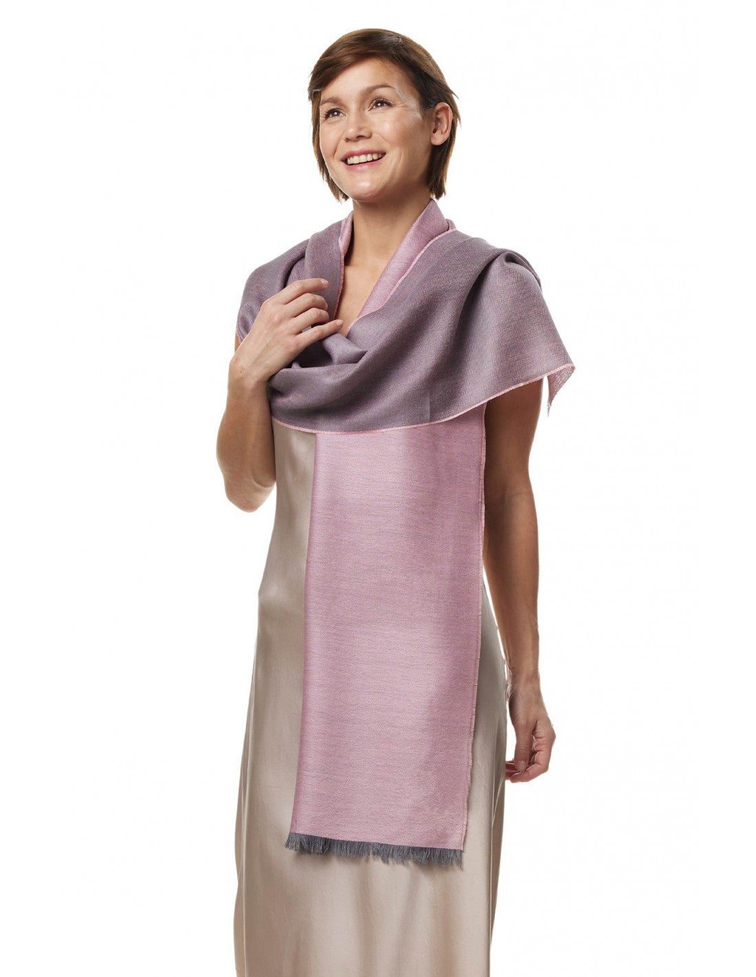 Šis dvipusis alpakų vilnos ir šilko šalis yra neįtikėtinai plonas, lengvas, švelnus ir prabangus. Vienas šalikas- daug skirtingų įvaizdžių! Jis turi 2 skirtingas, tačiau tobulai spalviškai kartu derančias puses. Tai lyg 2-3 daiktai viename- galite naudoti kaip skraistę, dėvimą ant pečių, išskirtiniam vakariniui įvaizdžiui, jis papuoš ir papildys puošniausią suknelę ar kostiumėlį. Taip pat šį šalį galite naudoti ir kaip šaliką- plona, lengva, tačiau šildanti alpakos vilna apsaugos Jus nuo šalčio. Kurkite unikalius įvaizdžius!
