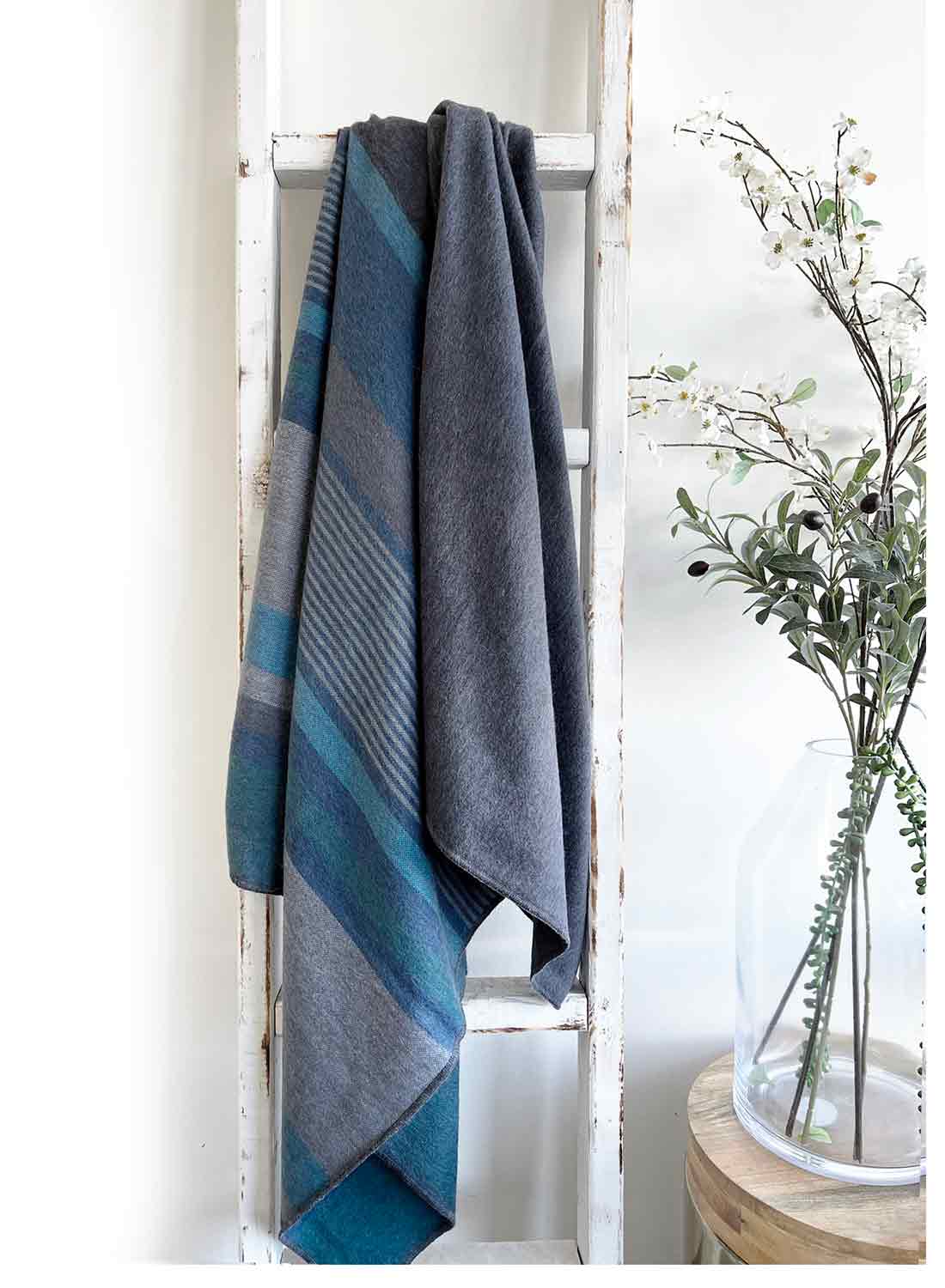 Pasinerkite į sodrius gamtos atspalvius su mūsų prabangiomis alpakų jauniklių vilnos antklodėmis, kurios harmoningai derina gilius melsvus atspalvius su pilku švelnumu.