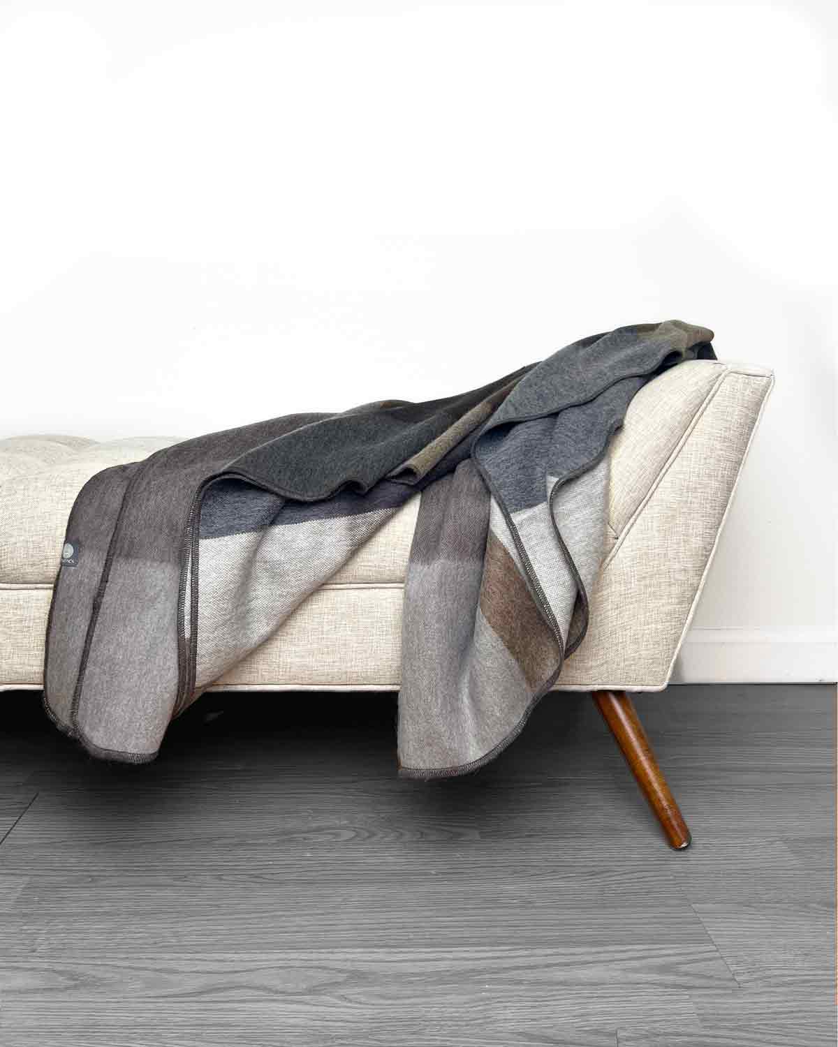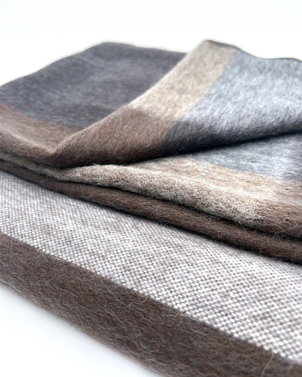 Pagražinkite savo namų interjero dizainą naudodami mūsų alpakų vilnos pledo Mosswood spalvas. Derinį sudaro nuostabi gilių rudų, subtilių pilkų atspalvių paletė ir švelnūs šviesiai mėlynos spalvos akcentai pledo pakraščiuose.